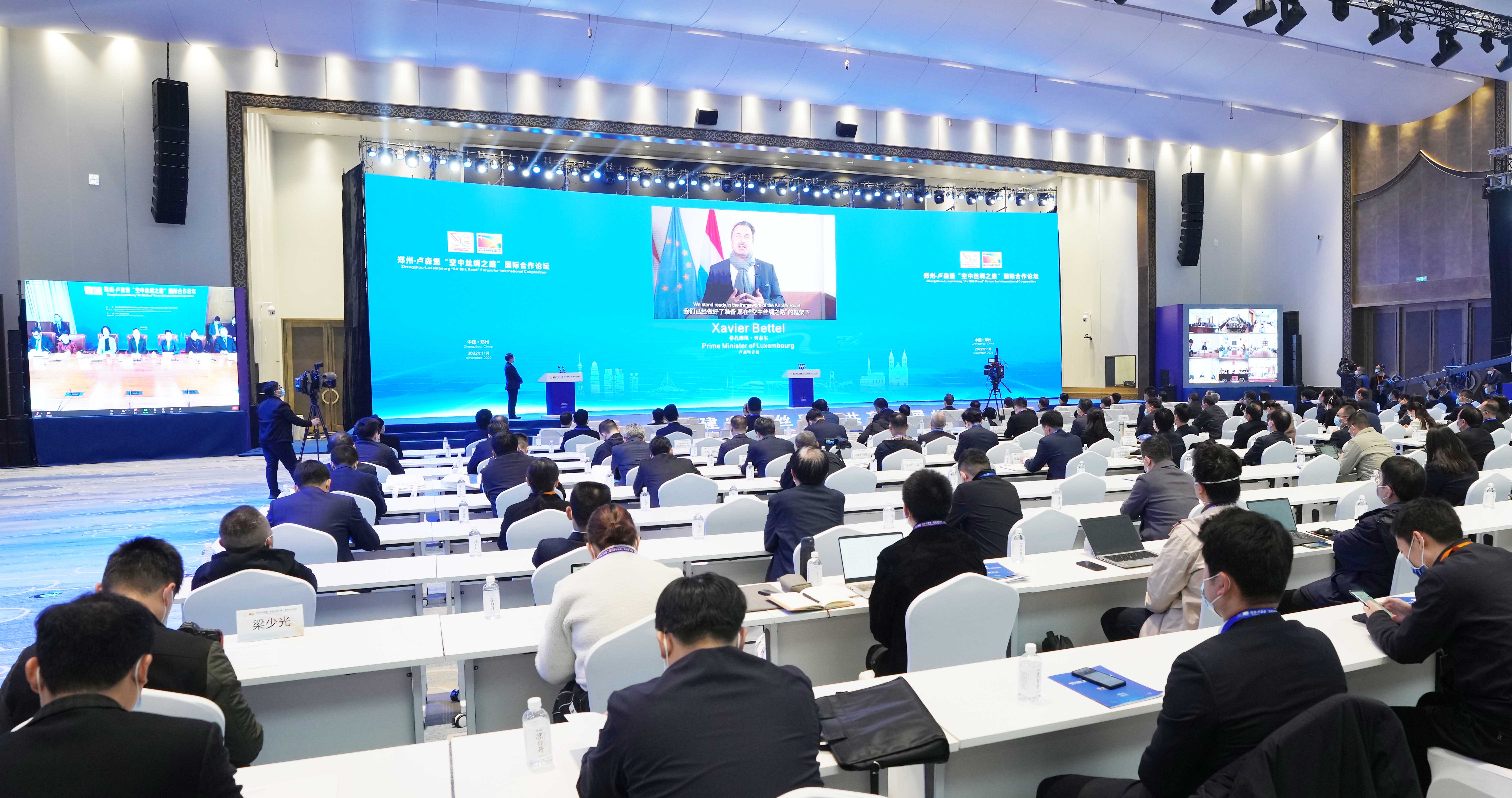 11月16日,以“做大做強中盧貨運航線‘空中絲路’”為主題的鄭州-盧森堡“空中絲綢之路”國際合作論壇在鄭州開幕。中央政治局委員、國家發(fā)展改革委主任何立峰,盧森堡首相格扎維埃·貝泰爾視頻致辭,盧森堡副首相兼交通和公共工程大臣弗朗索瓦·鮑施發(fā)來賀信。省委書記樓陽生致辭并宣布論壇開幕,省長王凱主持。